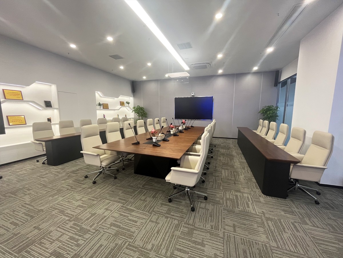 武汉华星光电会议室选用了托顿无线会议系统,包括TDAP02和数字会议系统TD5100,这两款系统以其卓越的性能和便携性,为会议室提供了灵活的音频解决方案。TDAP02系统采用UHF频段无线传输技术,确保了稳定的信号连接和高质量的音频输出,即使在复杂的电磁环境下也能保持清晰的语音传输。其内置的高性能麦克风和可调节的增益控制,使得声音捕捉更加精准,满足了不同场合的音量需求。此外,TD5200无线列席单元采用FSK调频实现声音信号传输,高保真,信噪比高,无声音延时;使用新型防啸叫单指向高灵敏度电容咪芯;TD5100系统是一套全数字控制,具多种发言模式,可与摄像机连接实现视 像跟踪功能,满足了大型会议的多样化需求。整体而言,托顿无线会议系统为武汉华星光电的会议沟通提供了强有力的技术支持,确保了每一次会议都能高效、顺畅地进行。