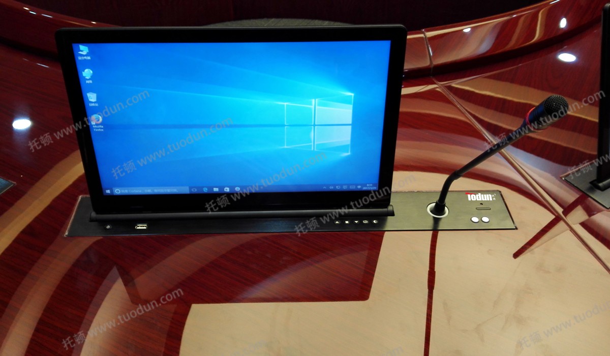 解决方案:托顿智能无纸化会议系统WZH3000,适合用于各种高端会议场合,以及重要的政务、商务、企事业单位和大型活动的会场实施应用。该系统基于嵌入式平台开发,采用嵌入式架构,电动升降,高级硬件配置包含双核处理器、多点电容触摸屏以及高分辨率真彩数字液晶屏。折叠式触控会议终端系统实现全数字化管理,支持网络连接方式,支持无人值守工作模式,可通过客户端或Web端登陆访问,有力保障通信质量。系统中央节点采用千兆以太网模式连接,级联扩展全部通过网线实现,终端采用有线通讯组网方式,对各种规格的会议厅以及临时会场均具有良好的适应性。