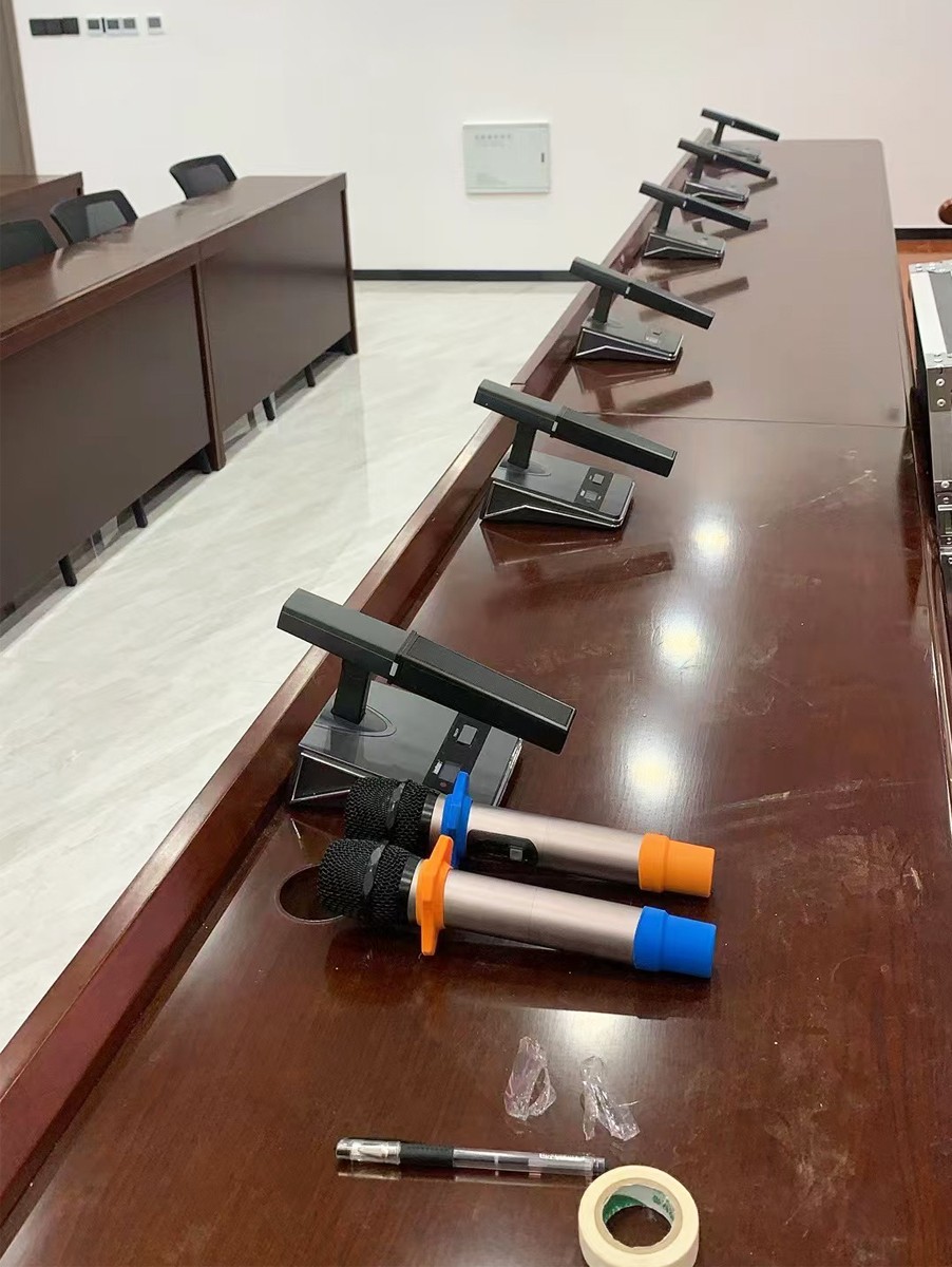 合肥某事业单位会议室使用托顿一拖四无线会议话筒TD914U,高灵敏度无线会议话筒,表现稳定出色,一拖二真分集无线手持麦克风TD980U,使用灵活,人声清晰。